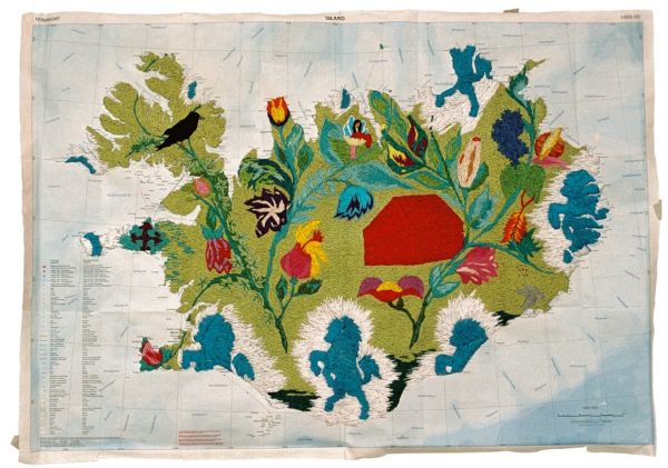 sælur reitur oder from the bottom of my heart, die bestickte Islandkarte, Winter 2003 / 04, Island, 70 x 100cm