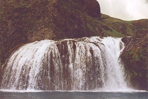 der stjórnafoss liegt östlich von kirkjubaejarklaustur - zwischen - kirkjugólf (kirchenfussboden) - eine durch die meeresbrandung glattpolierte säulenbasaltfläche - die stark an einen gesetzten kirchenboden erinnert - und der alten thingstätte kleifar. kleifar ist heute ein campingplatz. |
