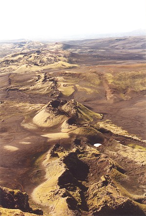 im sommer 1783 begann der grösste vulkanausbruch unserer geschichte. die lakispalte mit ihren über 100 kratern auf ungefähr 25 km länge - fing an feuer zu spucken. die lavamassen schoben sich unaufhaltsam in richtung der siedlungen. nur der damalige priester jón steingrimsson brachte die lava durch seine - »feuerpredigt« - vor kirkjubaejarklaustur zum stoppen. der ausbruch dauerte ungefähr 8 monate - giftgasse und ascheregen verseuchten grosse teile der insel. ein fünftel, ca. 9000 menschen starben. Viele tiere und vegetationen gingen ein. die isländer waren nach dem ausbruch und deren folgen ernsthaft in ihrer existenz gefährdet. selbst auf dem festland in europa - hatte man missernten durch die klimatischen veränderungen zu beklagen. |