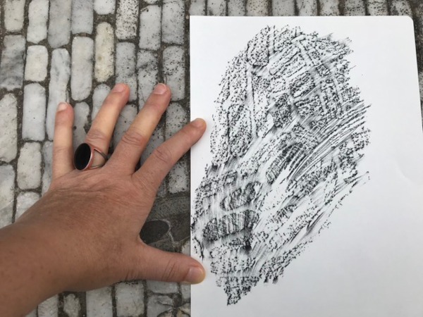 A frottage from a Freiburg sidewalk NEST-WORKS AND WANDER-LINES by Rahima Gambo